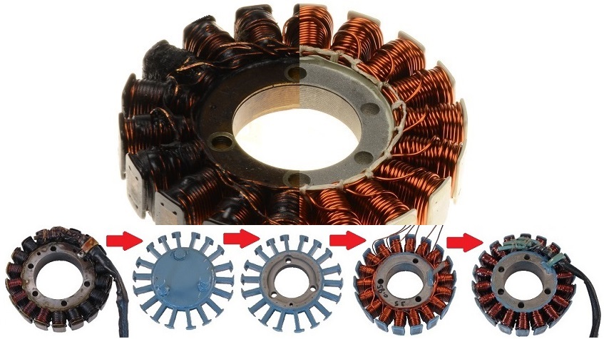 De volgende stap is het opnieuw wikkelen van de geïsoleerde statorkern.